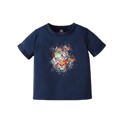 Yinshang Fun Animal Print 100% Cotton Loose Relaxed Sports Boys' Short Sleeve T-shirt