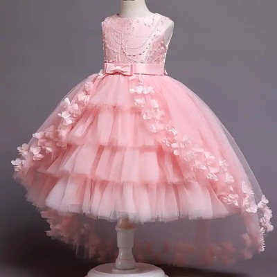 New girls' dress with trailing lace puffy dress at party flower girl dress
