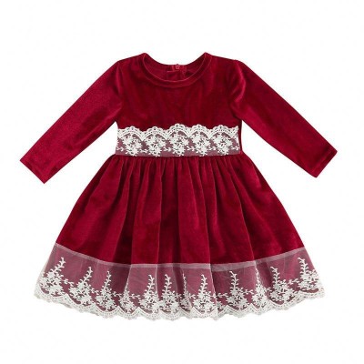 Christmas evening dresses Children Lace Ruffles Holiday Frocks Kids Velvet Dress Flower Girls' girls party Dresses