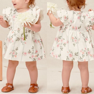 Baby Clothes OEM Hot Selling Good Quality Kids Clothing Self Side Ties Shirred Ruffles Floral Print Girls' Dresses