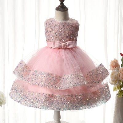 New Girls' Dress with Bubble Sleeves One Year Old Children's Dress Glow Sequin Children's Princess Dress
