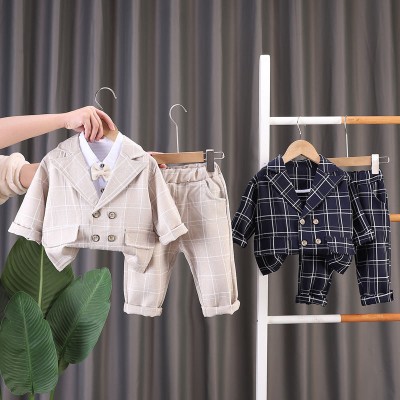 Autumn and Winter New Boys' Dress Set Handsome Checked Children's Small Suit Foreign Style Baby First Year Dress