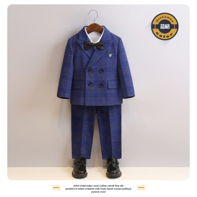 Factory outlet Children's Suit 2024 Autumn and Winter New Boys' Plaid Suit four Piece Performance Dress boys formal suit