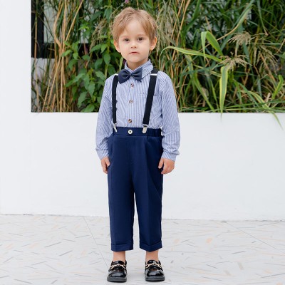 Boys' Strap Pants Set Spring/Summer Striped Shirt Primary and Secondary School Children's Graduation Performance Host Dress