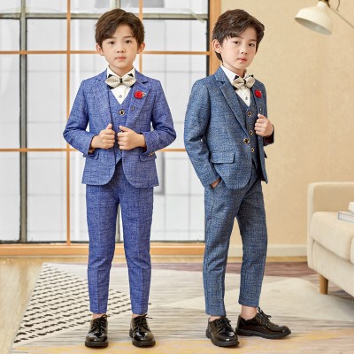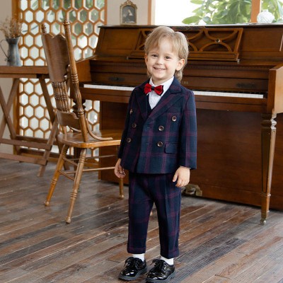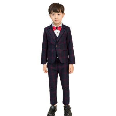 Factory outlet Children's Suit 2024 Autumn and Winter New Boys' Plaid Suit four Piece Performance Dress boys formal suit