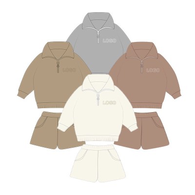 Custom Logo Baby Clothes Fall Long Sleeve Fleece Outfit Top and Shorts Two Piece Jogger Baby Boys Clothing Set
