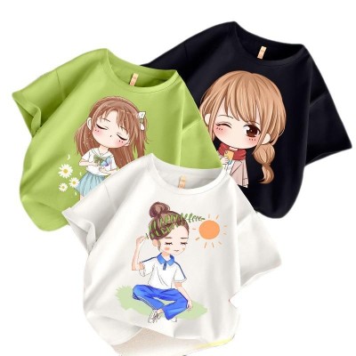 New Summer Children's Cartoon Printed Girls' T-shirt Girls' Cute Style Children's Short Sleeve Cotton T-shirt